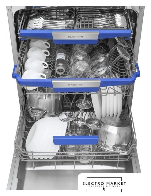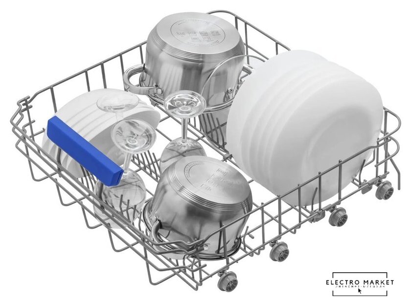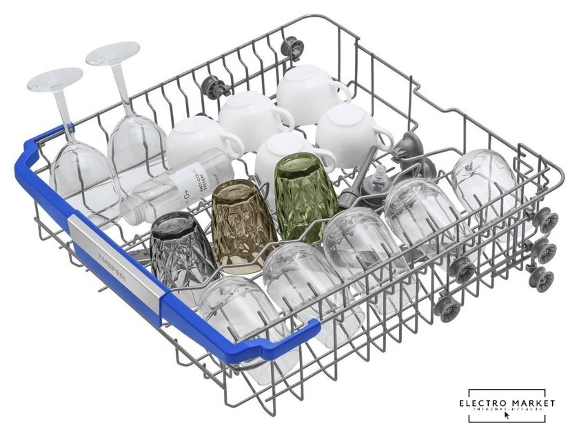 Особенности верхней корзины | регулировка положения по высоте, держатели для бокалов |