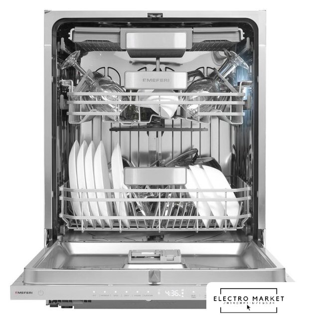 загрузка на 14 комплектов посуды, сенсорное управление, 7 программ, 59.6x55x82 см, черный цвет, сушка: с открыванием дверцы, индикация на полу: проекция дисплея