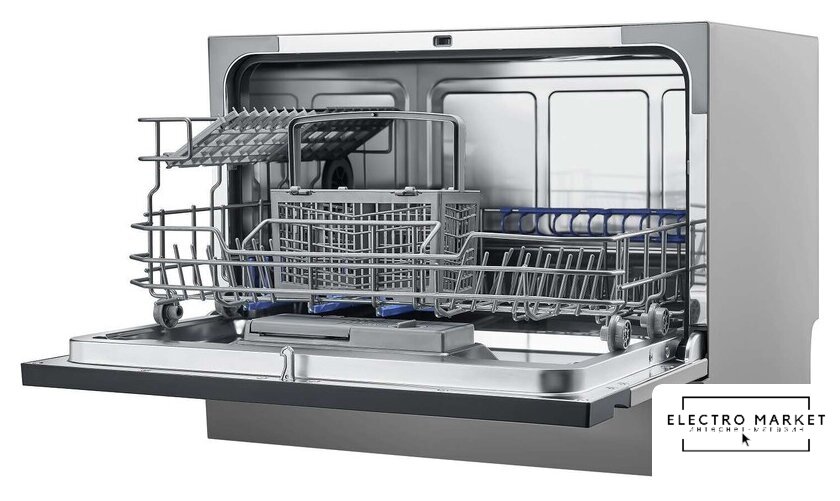 загрузка на 6 комплектов посуды, электронное управление, 6 программ, белый цвет, сушка: стандартная (конденсация), индикация на полу: нет