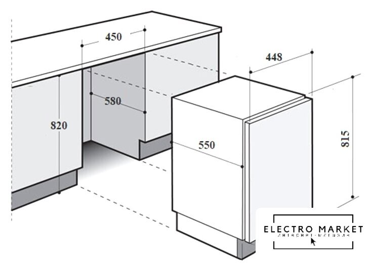 загрузка на 10 комплектов посуды, электронное управление, 8 программ, 44.8x55x82 см, белый цвет, сушка: стандартная (конденсация), индикация на полу: луч