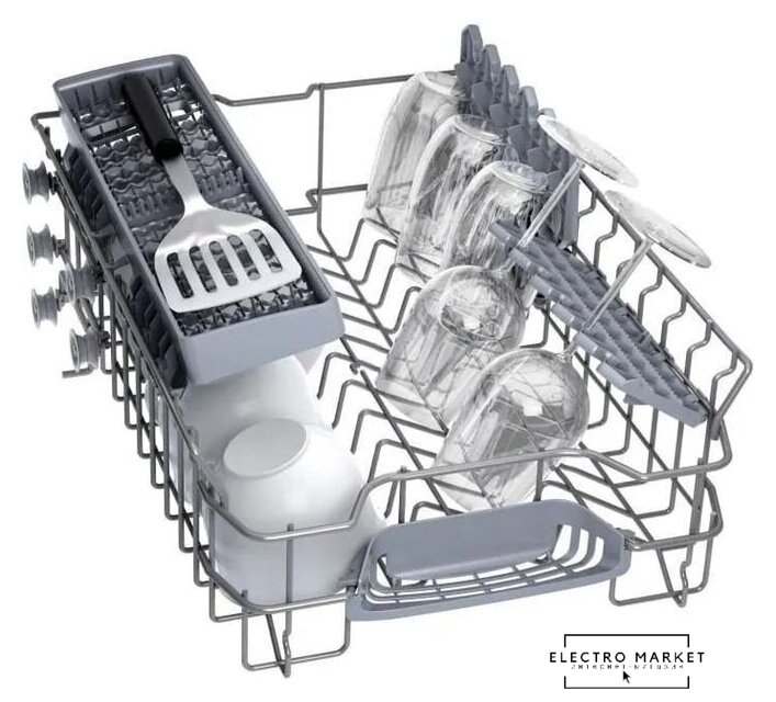 | Особенности верхней корзины | регулировка положения по высоте, держатели для бокалов, складывающиеся держатели |