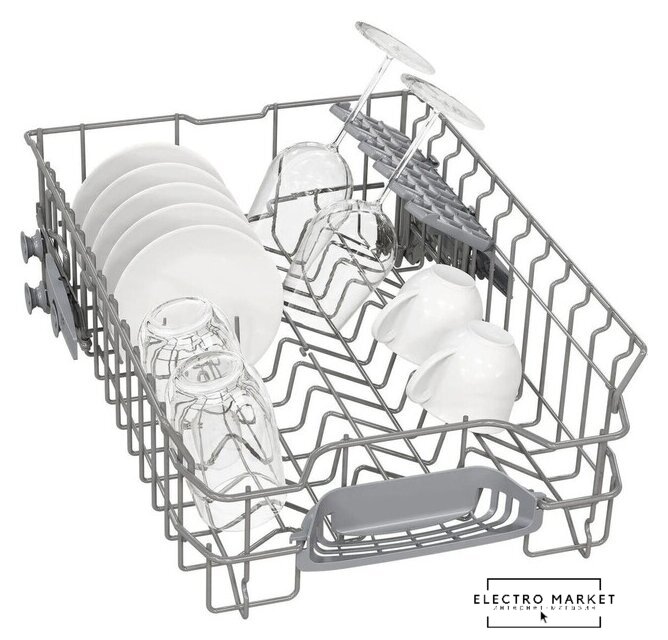 | Особенности верхней корзины | регулировка положения по высоте, держатели для бокалов, складывающиеся держатели |