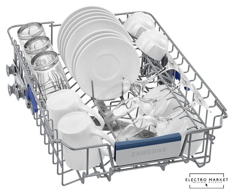 Особенности верхней корзины | регулировка положения по высоте, держатели для бокалов |
