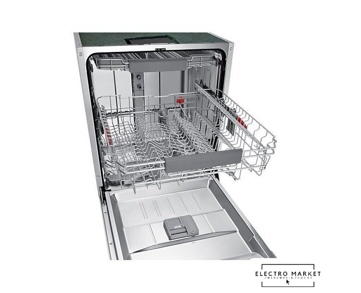 загрузка на 13 комплектов посуды, электронное управление, 6 программ, 59.8x55x81.5 см, нержавеющая сталь цвет, сушка: с открыванием дверцы/с теплообменником, индикация на полу: луч