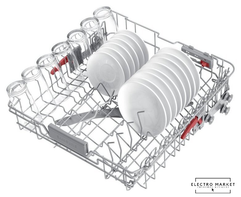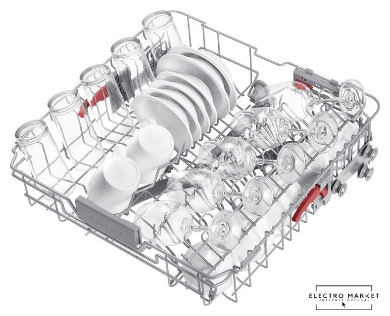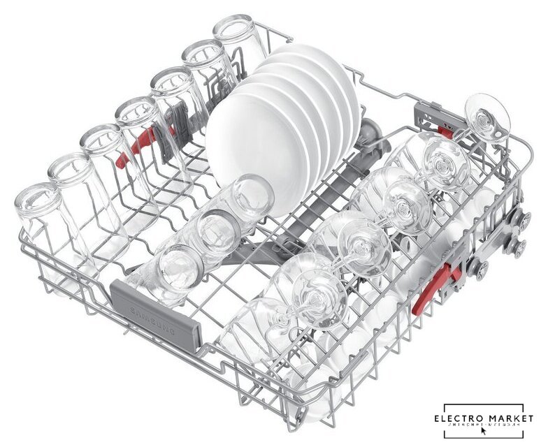 Особенности верхней корзины | регулировка положения по высоте, складывающиеся держатели |
