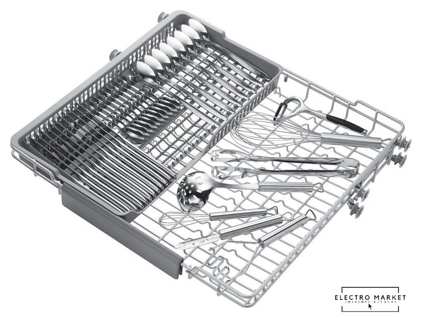 загрузка на 10 комплектов посуды, сенсорное управление, 6 программ, 44.8x55x81.5 см, серебристый цвет, сушка: с открыванием дверцы/с теплообменником/Zeolite, индикация на полу: проекция дисплея