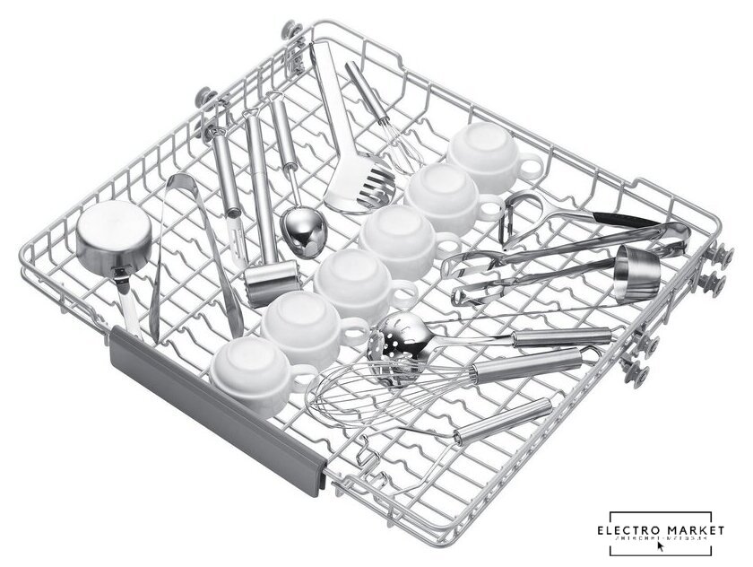 загрузка на 10 комплектов посуды, электронное управление, 6 программ, 44.8x55x81.5 см, нержавеющая сталь цвет, сушка: с открыванием дверцы/с теплообменником, индикация на полу: луч