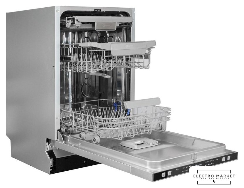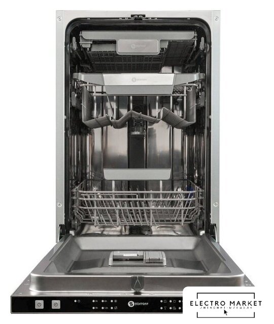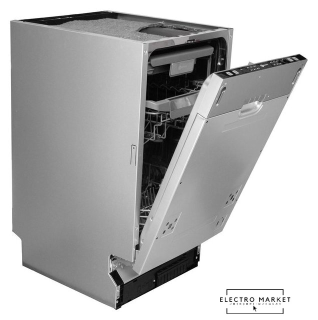 загрузка на 10 комплектов посуды, сенсорное управление, 7 программ, 45x57x82 см, черный цвет, сушка: вентиляционная с нагревом, индикация на полу: луч