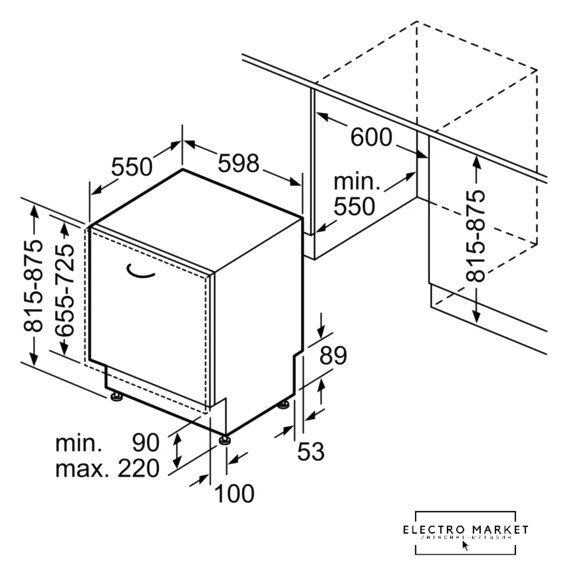загрузка на 13 комплектов посуды, сенсорное управление, 8 программ, 59.6×55×82 см, черный цвет, сушка: конденсационная, индикация на полу: луч