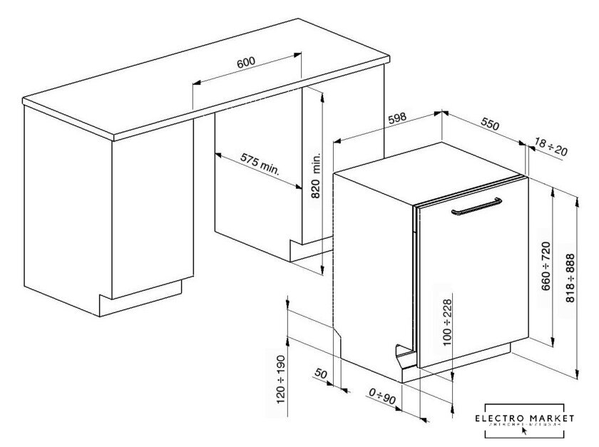 электронное управление, 11 программ, 59.8x55x82 см, серебристый цвет, сушка: с открыванием дверцы, индикация на полу: нет