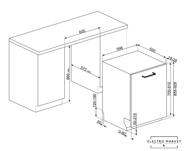 загрузка на 15 комплектов посуды, электронное управление, 8 программ, 59.8x55x82 см, серебристый цвет, сушка: стандартная (конденсация)/с открыванием дверцы, индикация на полу: луч