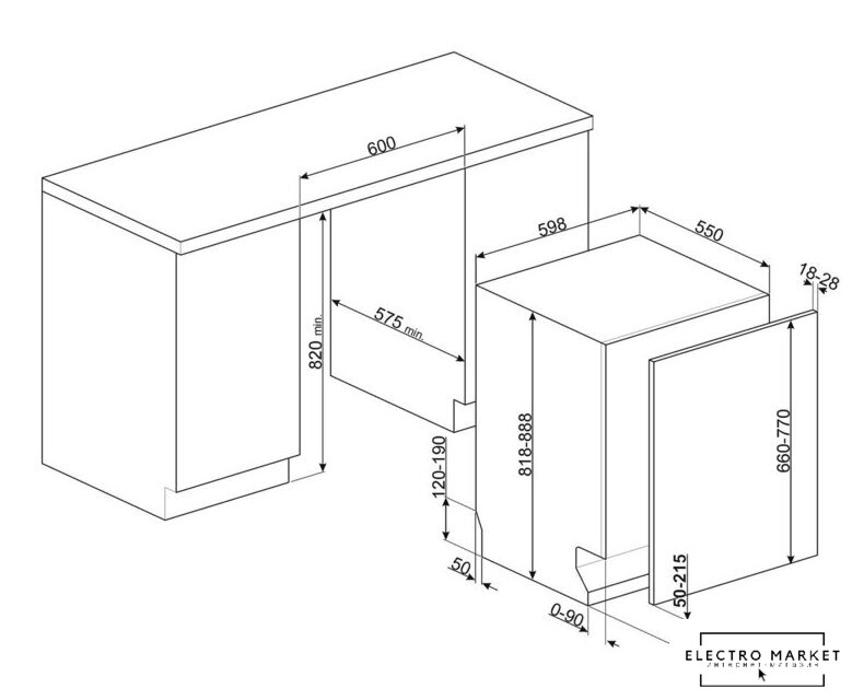 загрузка на 14 комплектов посуды, сенсорное управление, 8 программ, 59.6x55x82 см, черный цвет, сушка: стандартная (конденсация)/с открыванием дверцы, индикация на полу: луч