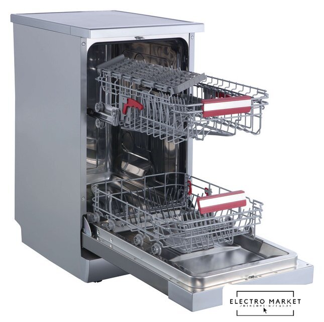 загрузка на 10 комплектов посуды, электронное управление, 8 программ, 44.8x60.5x85 см, серебристый цвет, сушка: стандартная (конденсация), индикация на полу: нет