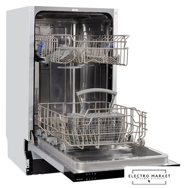 загрузка на 10 комплектов посуды, электронное управление, 6 программ, 44.9×55.3×82 см, черный цвет, сушка: конденсационная, половинная загрузка, индикация на полу: луч
