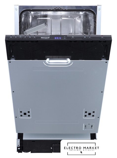 загрузка на 9 комплектов посуды, электронное управление, 5 программ, 44.8x55x82 см, белый/черный цвет, сушка: стандартная (конденсация), индикация на полу: нет