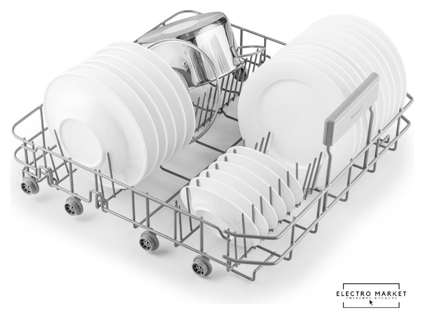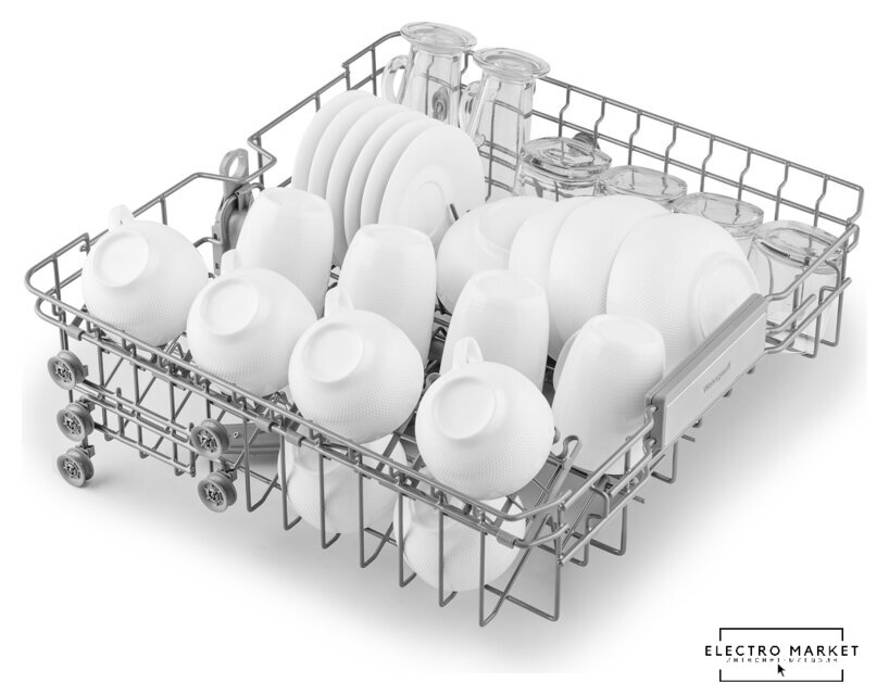 загрузка на 12 комплектов посуды, электронное управление, 6 программ, 59.8x55x82 см, серебристый цвет, сушка: стандартная (конденсация), индикация на полу: нет