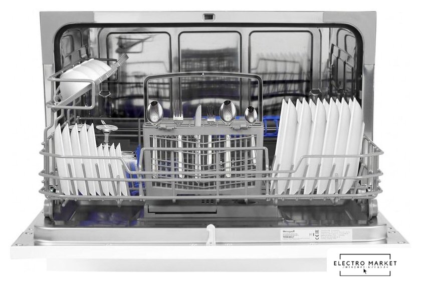 загрузка на 6 комплектов посуды, 7 программ