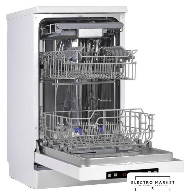 загрузка на 9 комплектов посуды, электронное управление, 6 программ, белый цвет, сушка: стандартная (конденсация), индикация на полу: нет