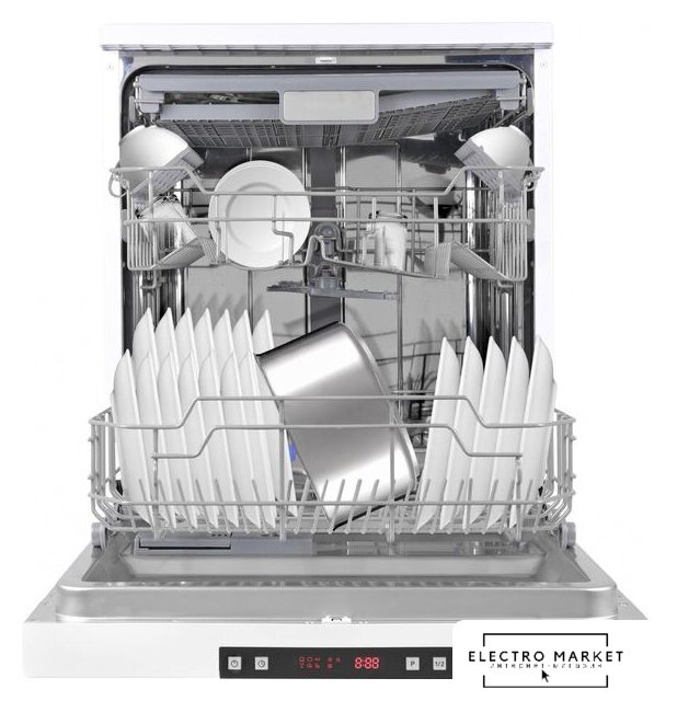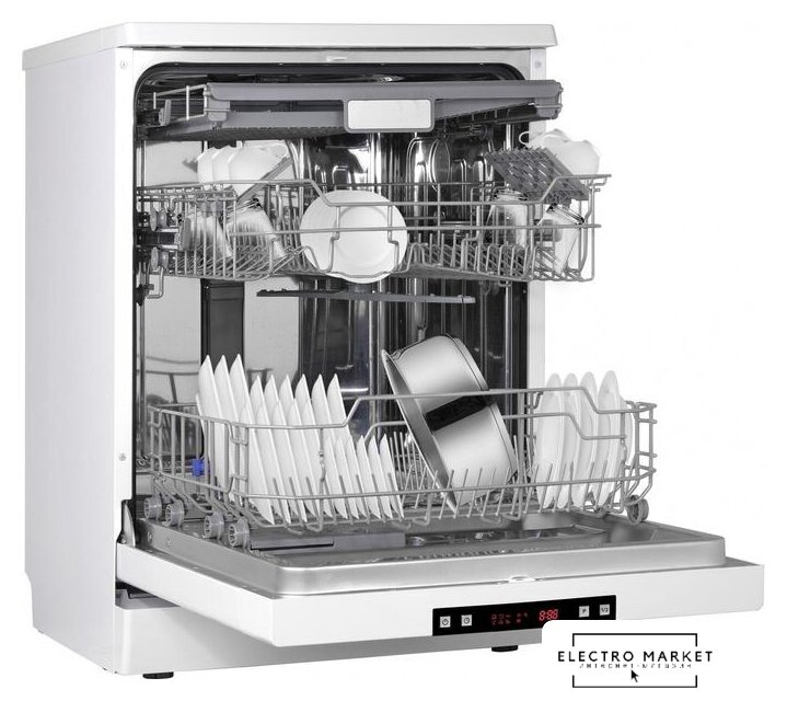 загрузка на 9 комплектов посуды, электронное управление, 6 программ, белый цвет, сушка: стандартная (конденсация), индикация на полу: нет