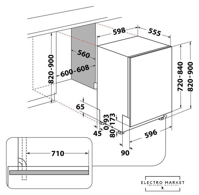 загрузка на 14 комплектов посуды, электронное управление, 10 программ, 59.8x55.5x82 см, черный цвет, сушка: с открыванием дверцы, индикация на полу: луч