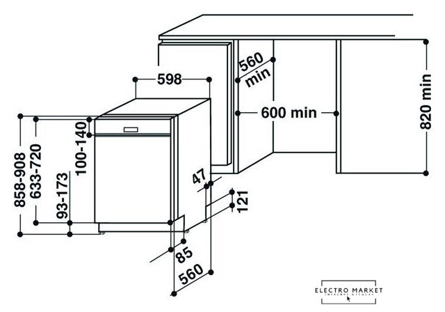 загрузка на 14 комплектов посуды, сенсорное управление, 8 программ, 59.6x55x82 см, черный цвет, сушка: с открыванием дверцы, индикация на полу: луч