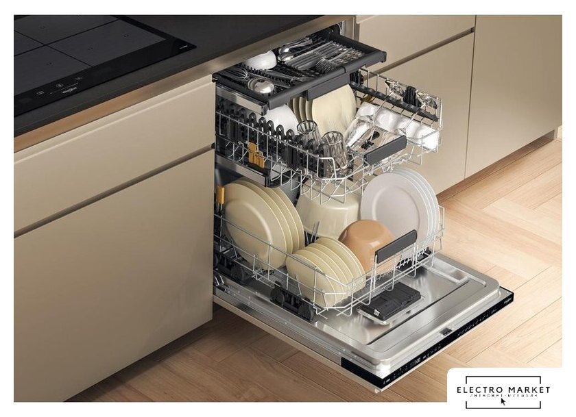 Особенности верхней корзины | регулировка положения по высоте, держатели для бокалов |