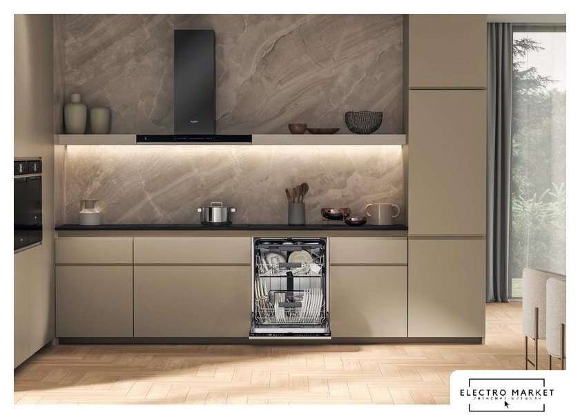 загрузка на 15 комплектов посуды, сенсорное управление, 8 программ, 59.6x55x82 см, черный цвет, сушка: стандартная (конденсация), индикация на полу: проекция дисплея