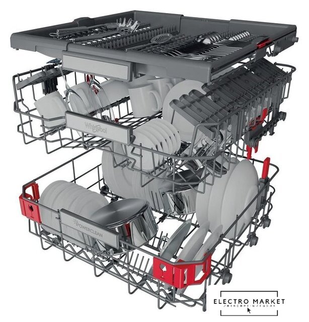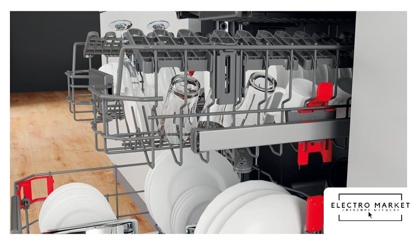 Особенности верхней корзины | регулировка положения по высоте, держатели для бокалов |
