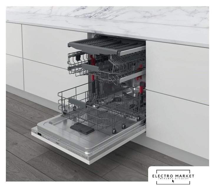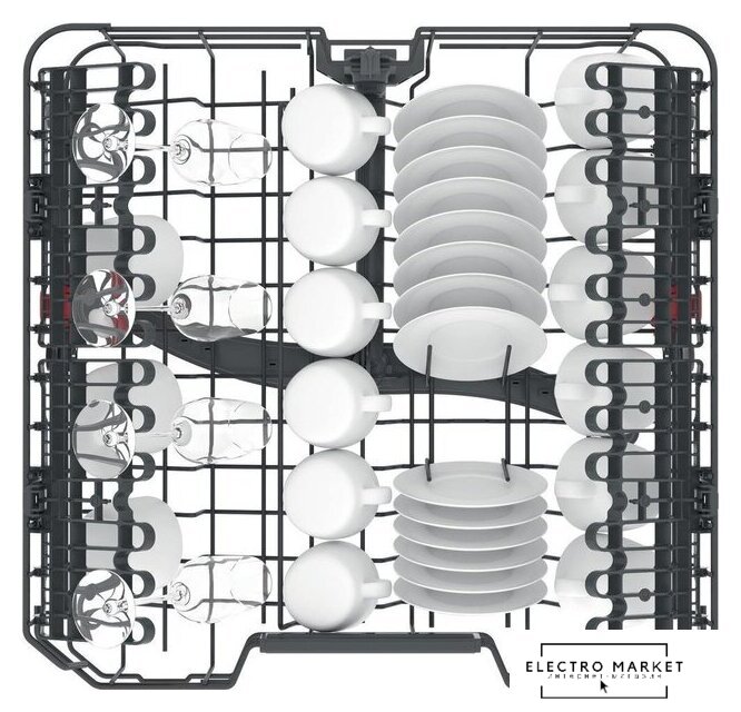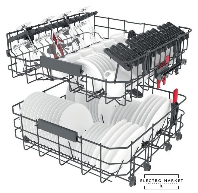 Особенности верхней корзины | регулировка положения по высоте, держатели для бокалов |