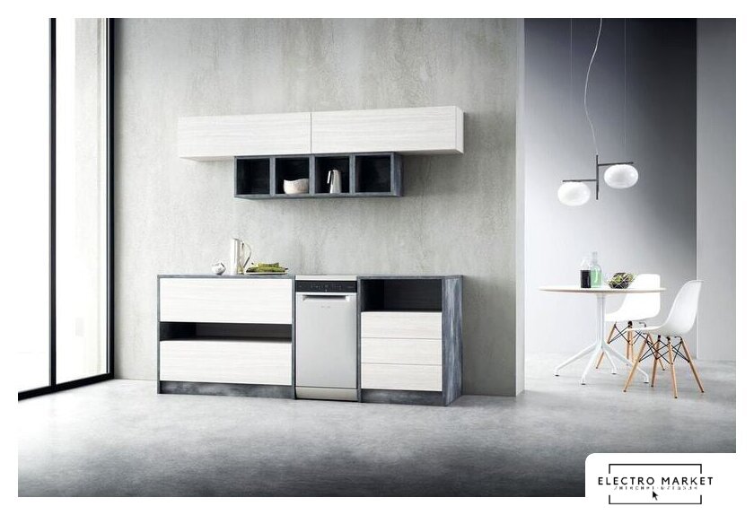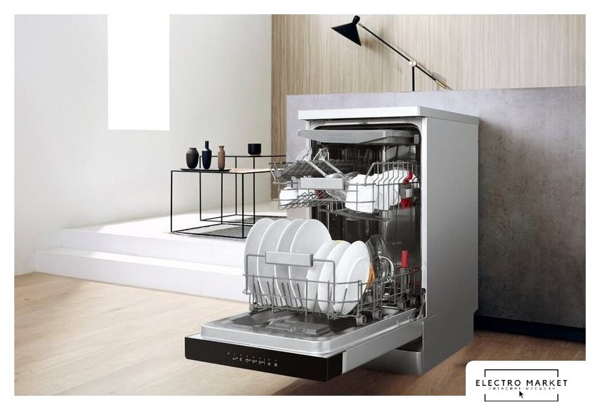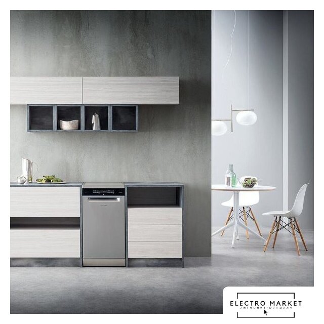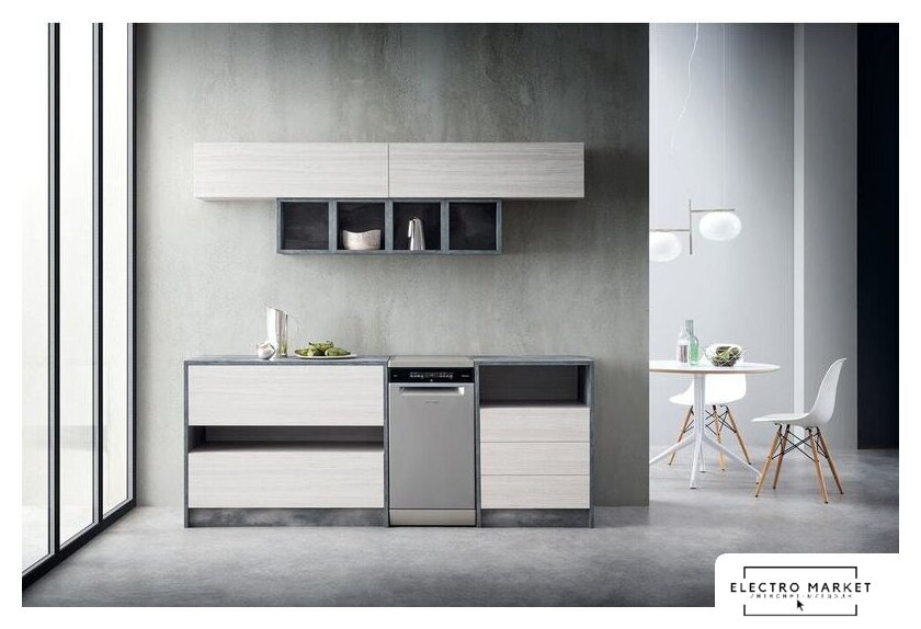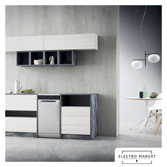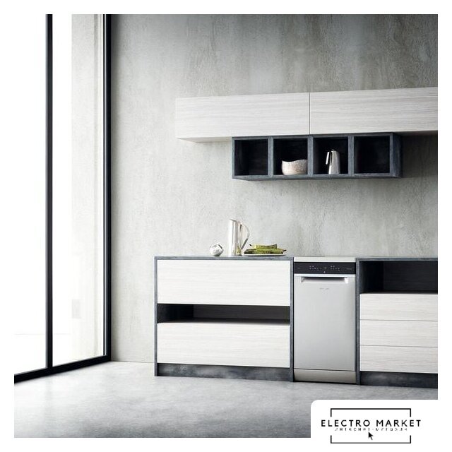 загрузка на 12 комплектов посуды, электронное управление, 6 программ, серебристый цвет, сушка: вентиляционная, индикация на полу: нет