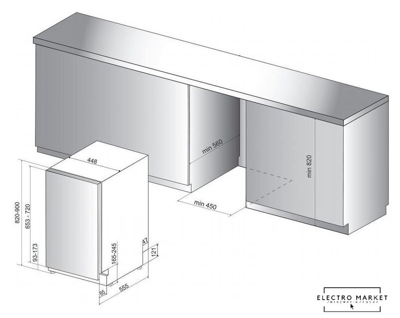 загрузка на 10 комплектов посуды, электронное управление, 6 программ, 44.8×55×81.5 см, нержавеющая сталь цвет, сушка: активная конденсация, индикация на полу: луч