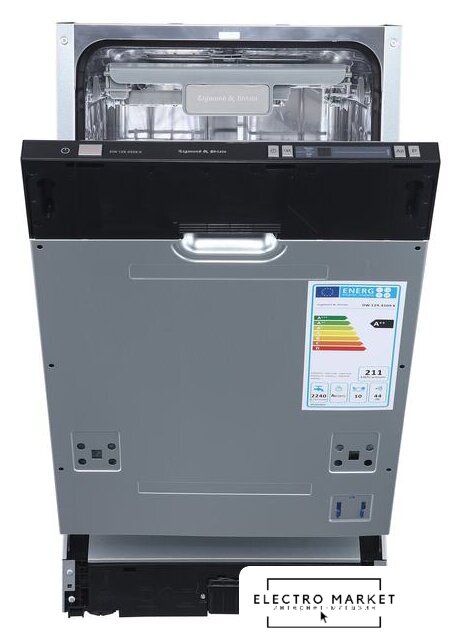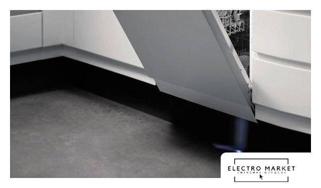 загрузка на 10 комплектов посуды, электронное управление, 8 программ, 44.8×55×82 см, черный цвет, сушка: активная конденсация, половинная загрузка, индикация на полу: луч