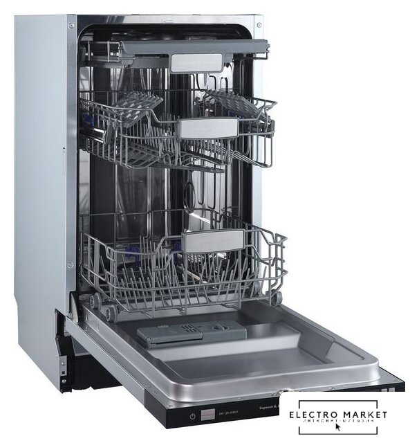 загрузка на 9 комплектов посуды, электронное управление, 6 программ, 44.8×55×82 см, черный цвет, сушка: конденсационная, половинная загрузка, индикация на полу: нет