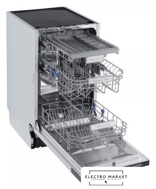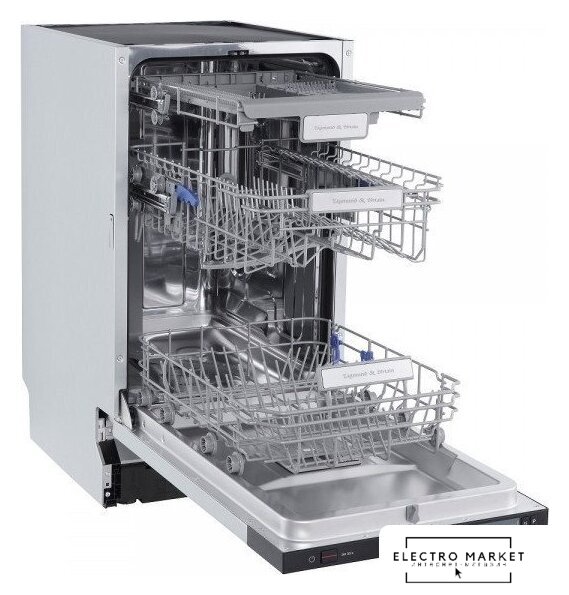 загрузка на 10 комплектов посуды, электронное управление, 7 программ, 44.8x55x82 см, серебристый цвет, сушка: стандартная (конденсация)/с открыванием дверцы, индикация на полу: проекция дисплея
