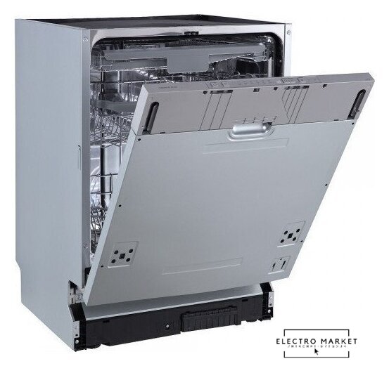 загрузка на 12 комплектов посуды, электронное управление, 6 программ, 59.8x55x82 см, черный цвет, сушка: стандартная (конденсация), индикация на полу: нет