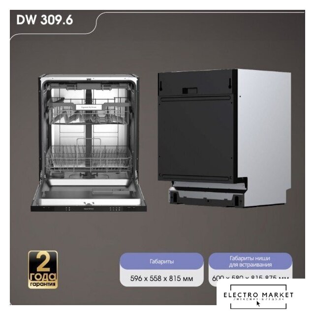 загрузка на 12 комплектов посуды, электронное управление, 5 программ, 59.8x55x81.5 см, черный цвет, сушка: с теплообменником, индикация на полу: луч