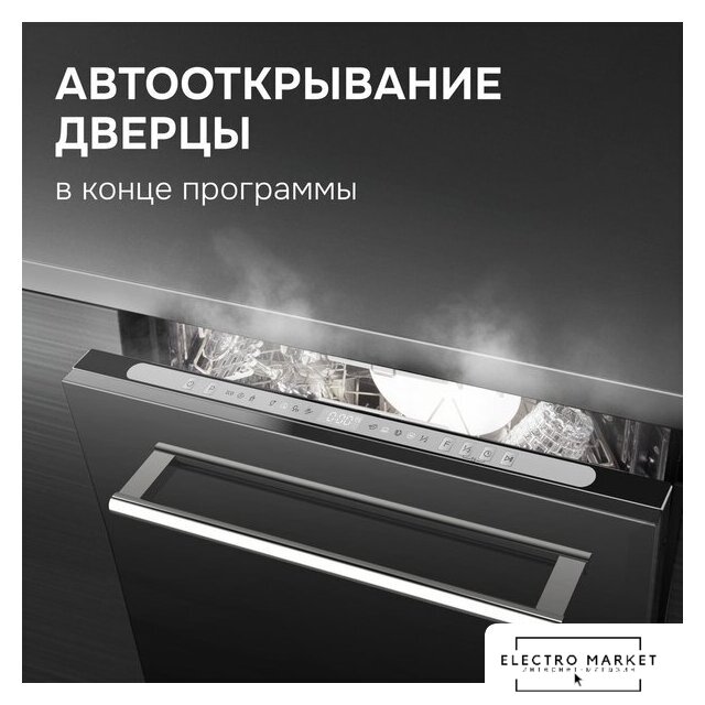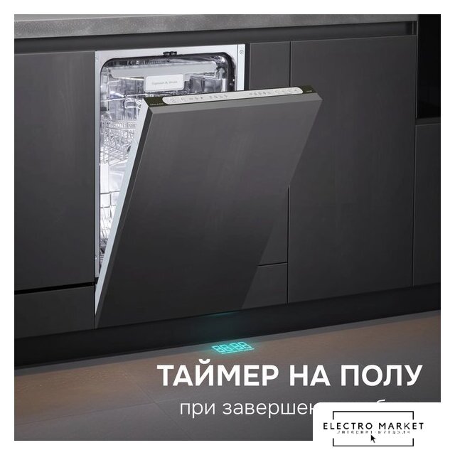загрузка на 12 комплектов посуды, электронное управление, 4 программы, 59.8x55x81.5 см, черный цвет, сушка: с теплообменником, индикация на полу: луч