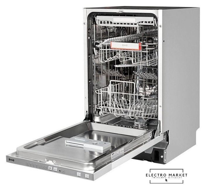 загрузка на 10 комплектов посуды, электронное управление, 8 программ, 44.8×55×82 см, черный цвет, сушка: активная конденсация, половинная загрузка, индикация на полу: луч