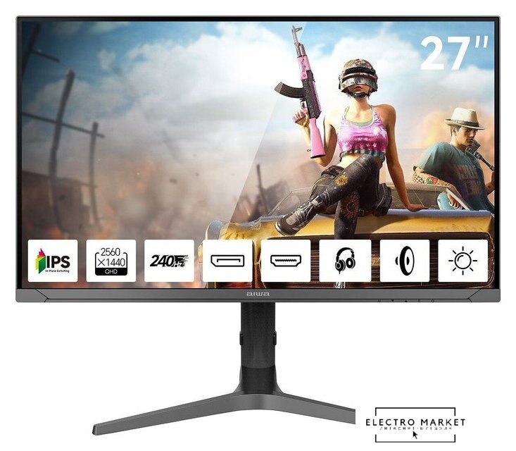27", 16:9, 2560x1440, IPS, 180 Гц, AMD FreeSync Premium, динамики, интерфейсы HDMI+DisplayPort