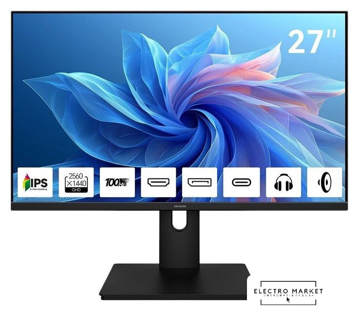 27", 2560x1440, 16:9, IPS, 100 Гц, яркость 300 нит, динамики, HDMI+DisplayPort, питание по USB-C до 15 Вт