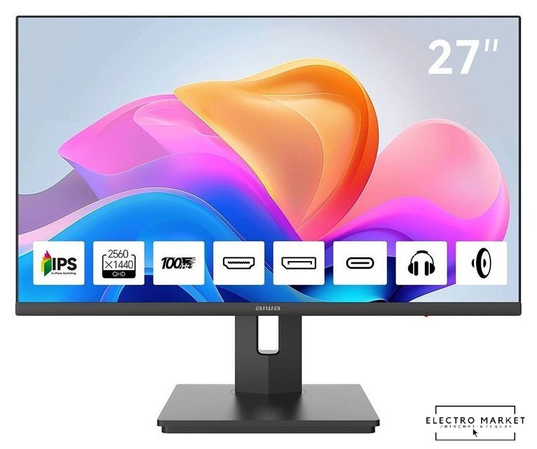 27", 2560x1440, 16:9, IPS, 100 Гц, яркость 300 нит, динамики, HDMI+DisplayPort