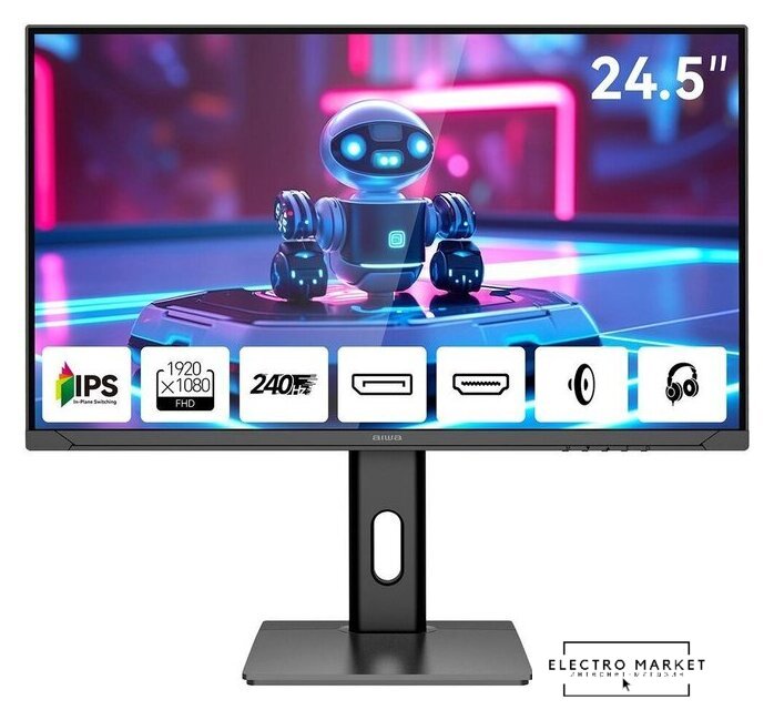 24.5", 16:9, 1920x1080, IPS, 240 Гц, AMD FreeSync Premium Pro, динамики, интерфейсы HDMI+DisplayPort, регулировка высоты, портретный режим