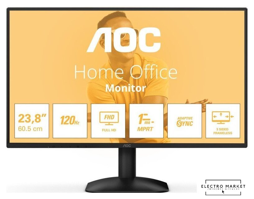 23.8", 1920x1080, 16:9, IPS, 120 Гц, глубина 6 бит + FRC, яркость 300 нит, HDMI+D-Sub (VGA)
