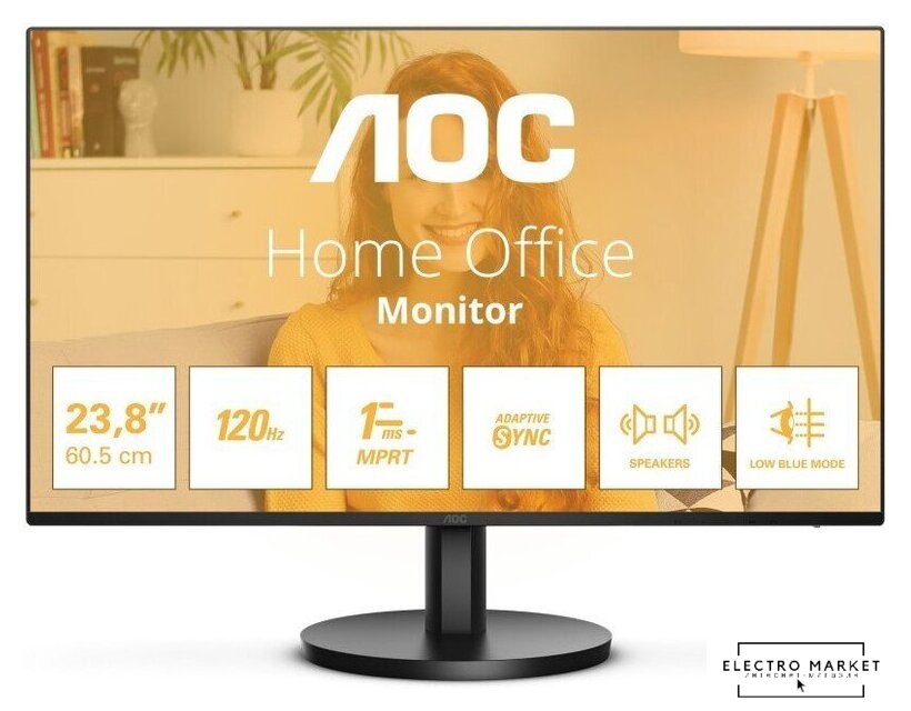 23.8", 16:9, 1920x1080, IPS, 120 Гц, VESA Adaptive-Sync, интерфейсы HDMI+D-Sub (VGA)