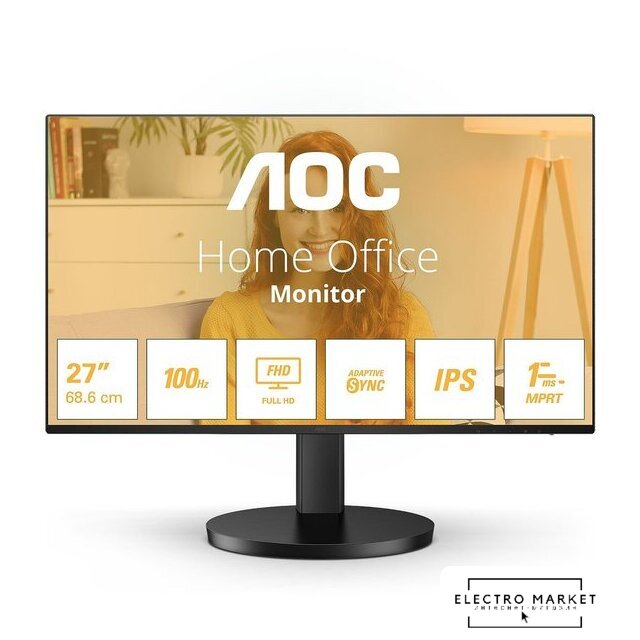 27", 16:9, 1920x1080, IPS, 100 Гц, VESA Adaptive-Sync, динамики, интерфейсы HDMI+D-Sub (VGA)