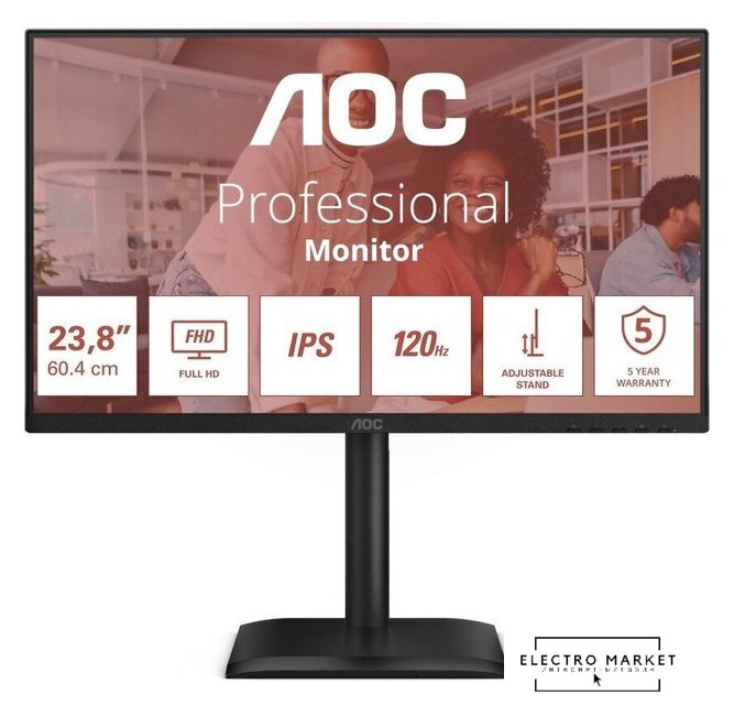 23.8", 1920x1080, 16:9, IPS 75 Гц, глубина 6 бит + FRC, яркость 250 нит, HDMI+DisplayPort+D-Sub (VGA)