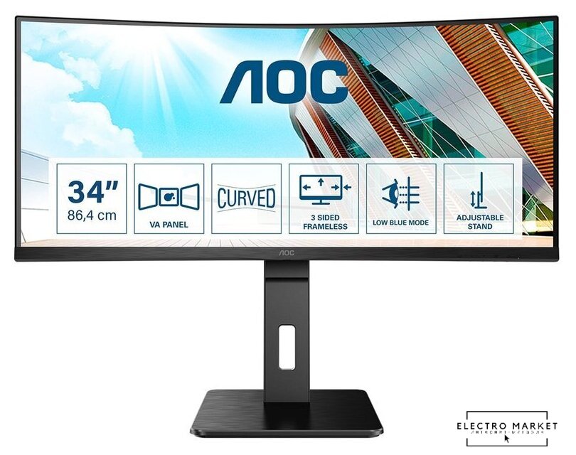 34", 21:9, 3440x1440, VA, изогнутый (1500R), 100 Гц, AMD FreeSync, динамики, интерфейсы HDMI+DisplayPort+USB Type-C, регулировка высоты