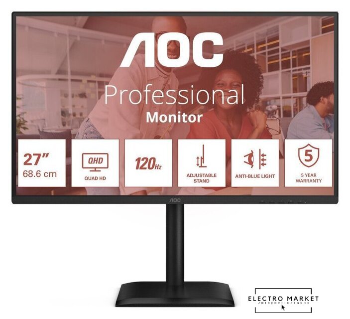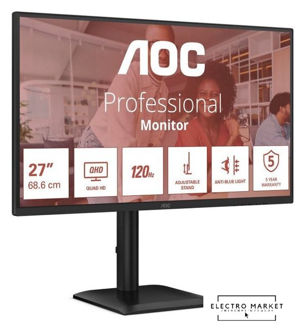 27", 2560x1440, 16:9, IPS, 100 Гц, яркость 300 нит, динамики, HDMI+DisplayPort+USB Type-C, питание по USB-C до 65 Вт, регулировка высоты, портретный режим
