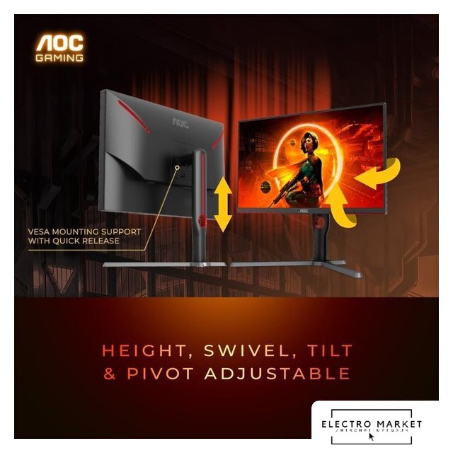 27", 16:9, 2560x1440, IPS, 260 Гц, AMD FreeSync Premium/совместимый с NVIDIA G-Sync, динамики, интерфейсы HDMI+DisplayPort, регулировка высоты, портретный режим