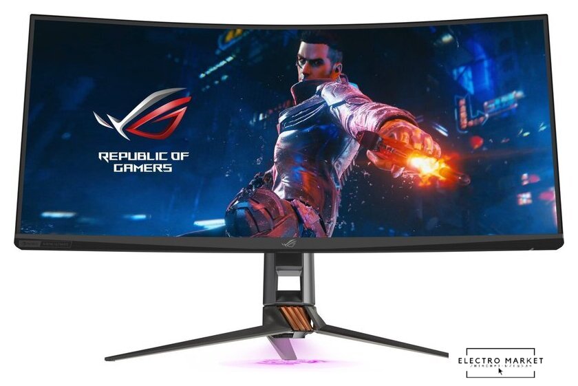 34", 21:9, 3440x1440, OLED, изогнутый (1800R), 175 Гц, NVIDIA G-Sync Ultimate, интерфейсы HDMI+DisplayPort, регулировка высоты